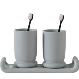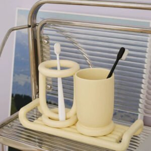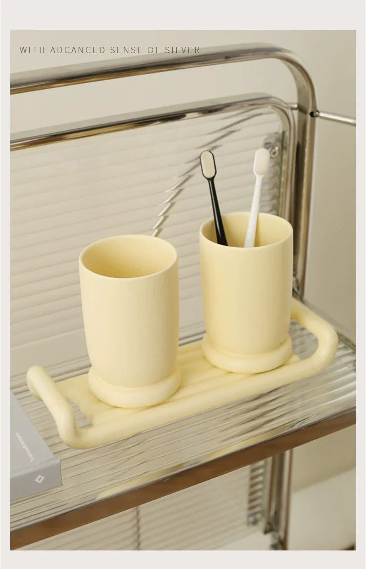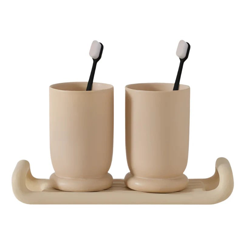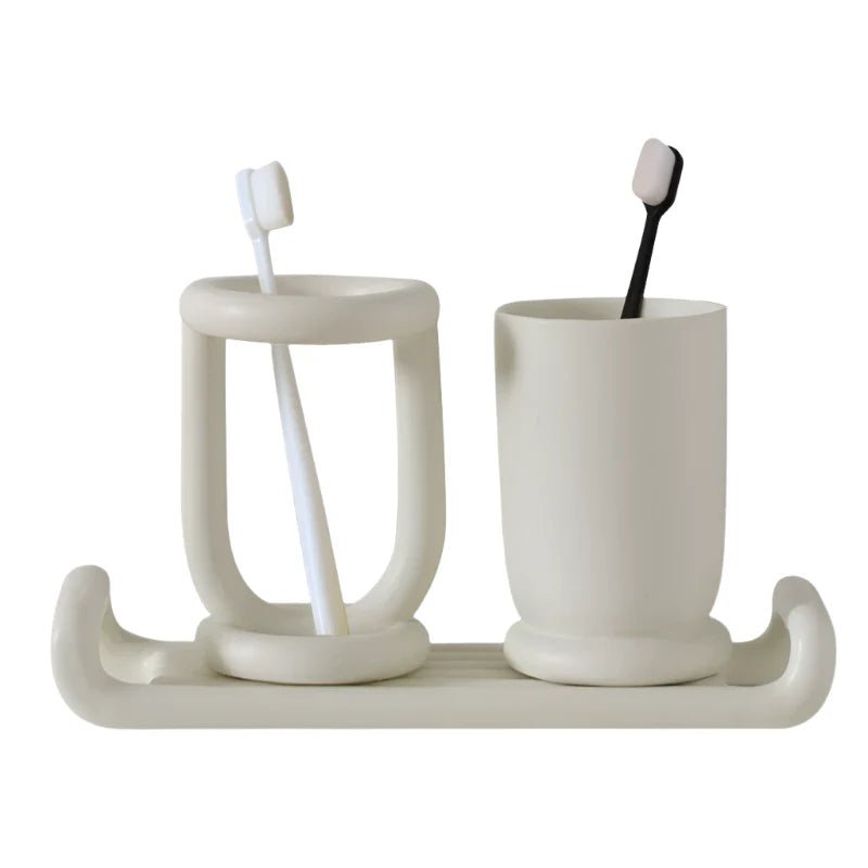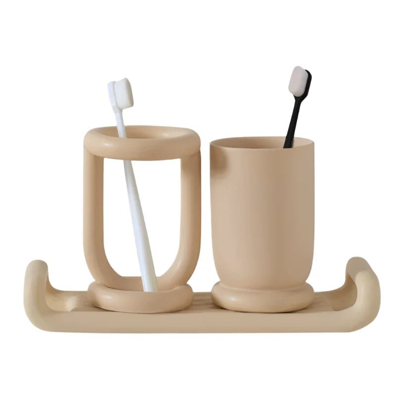 - Cream Handle Tray with Cream Toothbrush Holder + Cream Toothbrush Cup