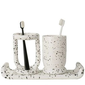 This bathroom essentials set offers more than just an appealing design; it is thoughtfully functional. The trays provide an organized space for your beauty products and toiletries, while the toothbrush holders and cups offer a stylish way to keep your essentials at hand. Each piece coordinates beautifully together, enhancing the overall look of your bathroom while keeping it tidy and clutter-free.