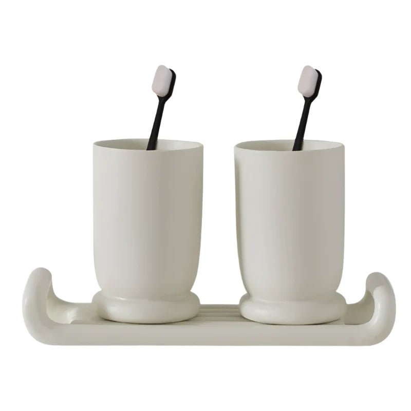 - Cream Handle Tray with Cream Toothbrush Cup x2