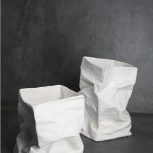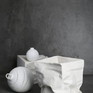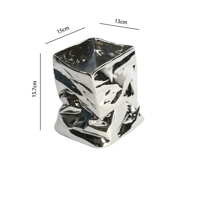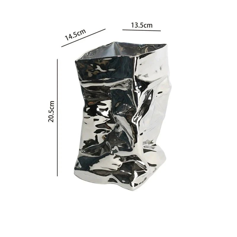 The Damian Fold-Bag vase is available in a variety of eye-catching color classifications: the classic White Paper Bag Vase in both tall and short options, and the luxe Electroplated Silver Paper Bag Vase also in tall and short styles. Each variant is designed to infuse a sense of creativity and elegance into your décor. The matte finish of the white vases offers a calming aesthetic, while the electroplated silver version provides a striking metallic effect, bringing a cold yet sophisticated touch to your space.
